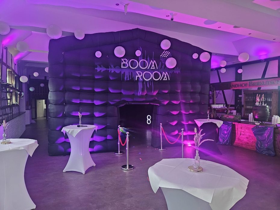 | Selfmade | 6x6m Grundfläche für 45 Personen Professionelle Soundanlage LED-Lichtshow Optional: Boom House 8x6m buchbar Inklusive: Partyzelt, Dauergebläse, Schutzplane, Befestigungsmaterial Selbstabholung + Bedienungsanleitung | 199€ / Tag | 229€ / Tag |